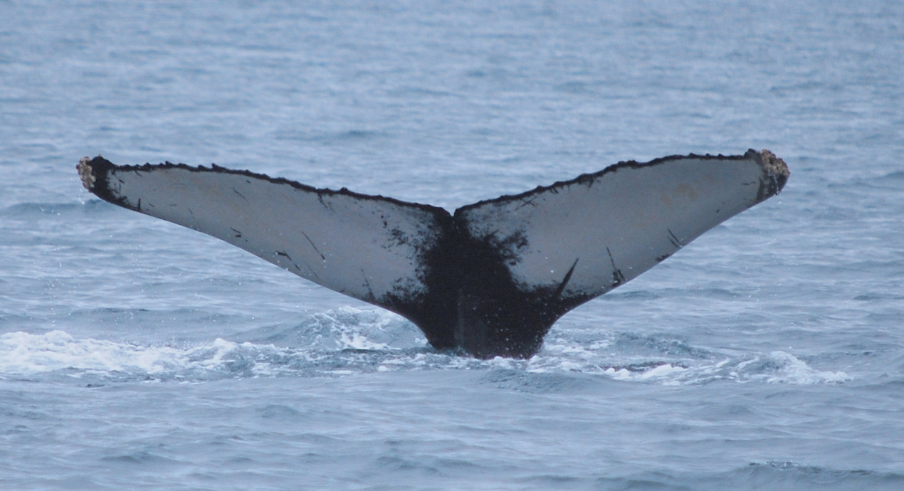 Hey everyone, well, today is my day off but I got some great news from my co-workers, Jolinne and Nick….they has at least 4 humpbacks this morning and a number of fin whales on the Wolves Bank on the flood tide. The humpbacks have been IDed by me (and I just got confirmation from PCCS) as Arrowhead (we have seen him a number of times this season already, a male first sighted in 1976), Pike (the 2007 calf of Six), Chevron (not much is known about this young whale) and Fray (an unknown from 2009). John mentioned there were some other humpbacks they could see at a distance as well! I’m sorry I missed the trip but Jolinne gave me fluke shots (THANK YOU JOLINNE) of the 3 new humpbacks…