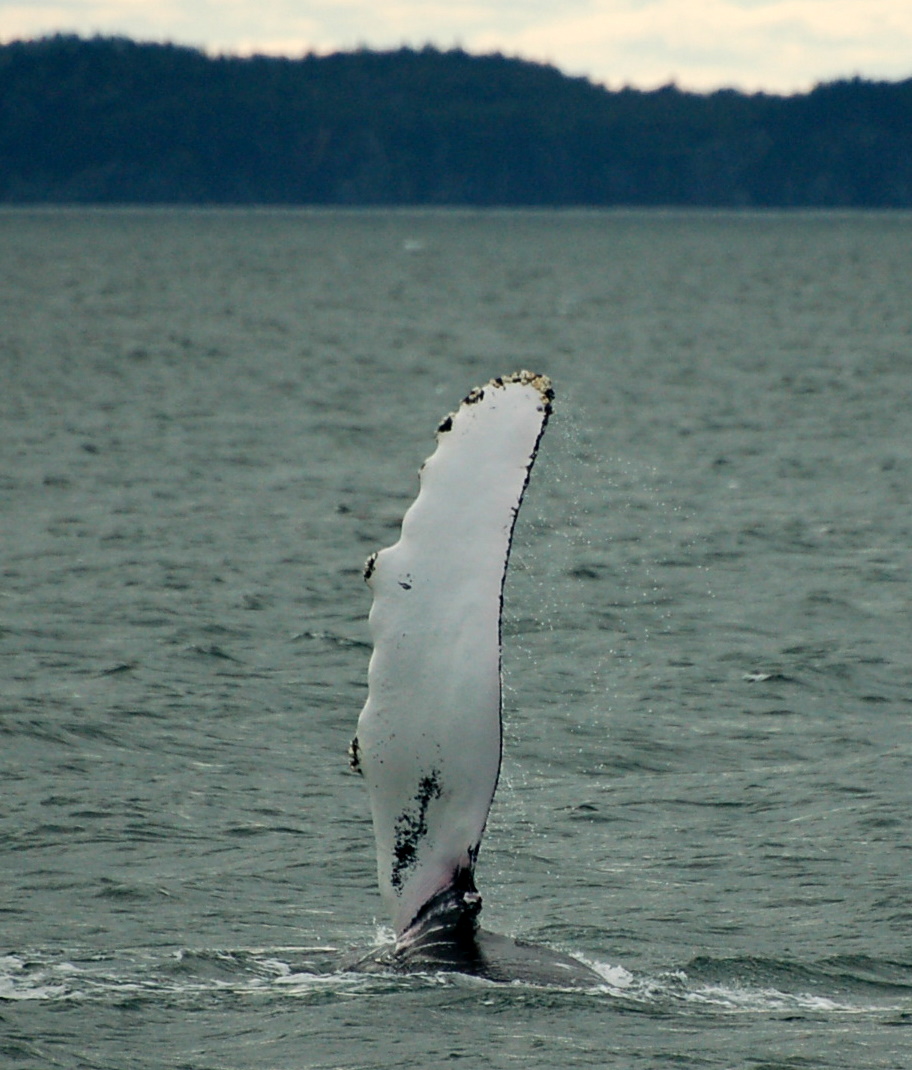 We made our way back towards South Wolf because we saw some blows there and we found 4 fin whales and John mentioned it was time to start heading back and just as we turned the boat we saw a full breach about 1/2 mile away and then a light and low blow….another humpback. We made our way closer and the humpback whale, later IDed as EKG, starting slapping his pectoral flipper on the surface of the water. Below are some pictures from today with EKG.