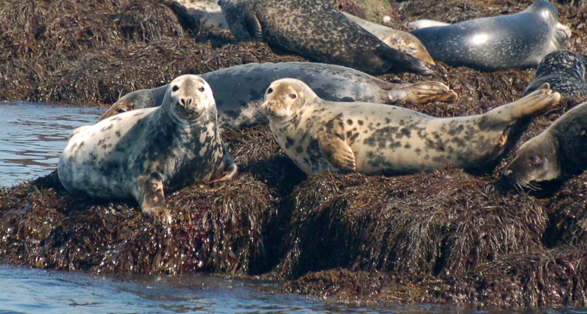 Thanks for checking in today, tomorrow is our trip out into the open Bay to search for right whales. There is some weather we are keeping a close eye on and I will be sure to give you an update tomorrow evening. I wanted to share this photo with you, 2 beautiful female grey seals….and they were VERY vocal, also note the large male directly behind them.