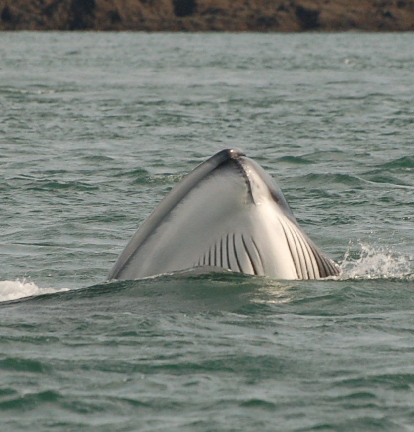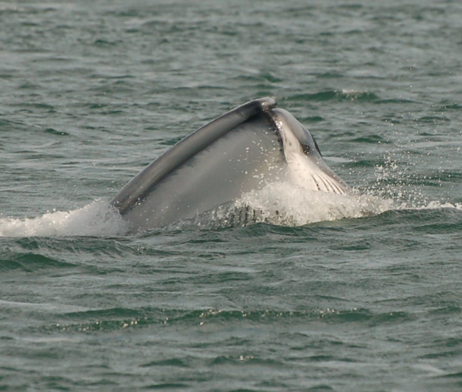 This lunge was straight up out of the water, again you can see the ventral pleats and even the asymmetrical colouration of the lower jaw (the right hand side is white while the left side is dark brown).