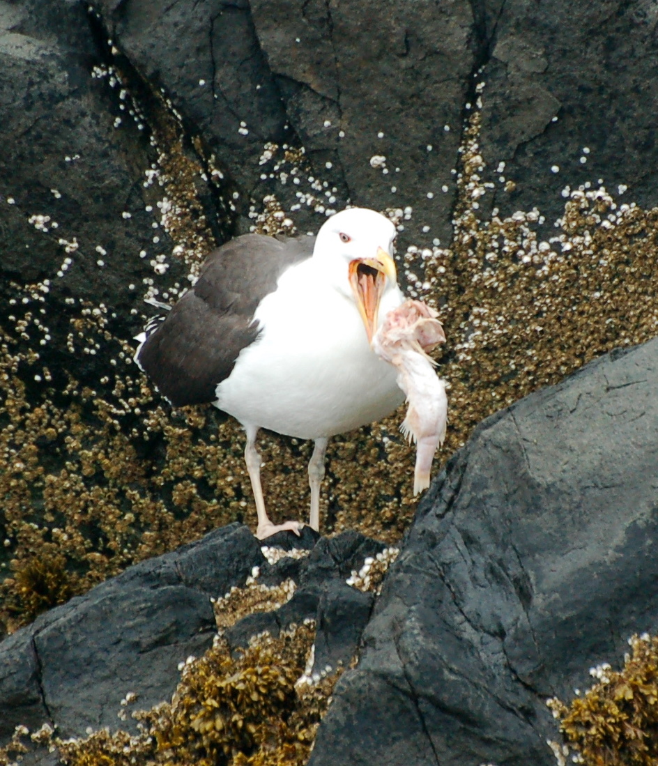 We also saw a large black backed gull that has just returned to the island with some lunch….look like some fish. These gulls are very large, they are predators and can even take down a small seabird like a puffin out of mid-flight!