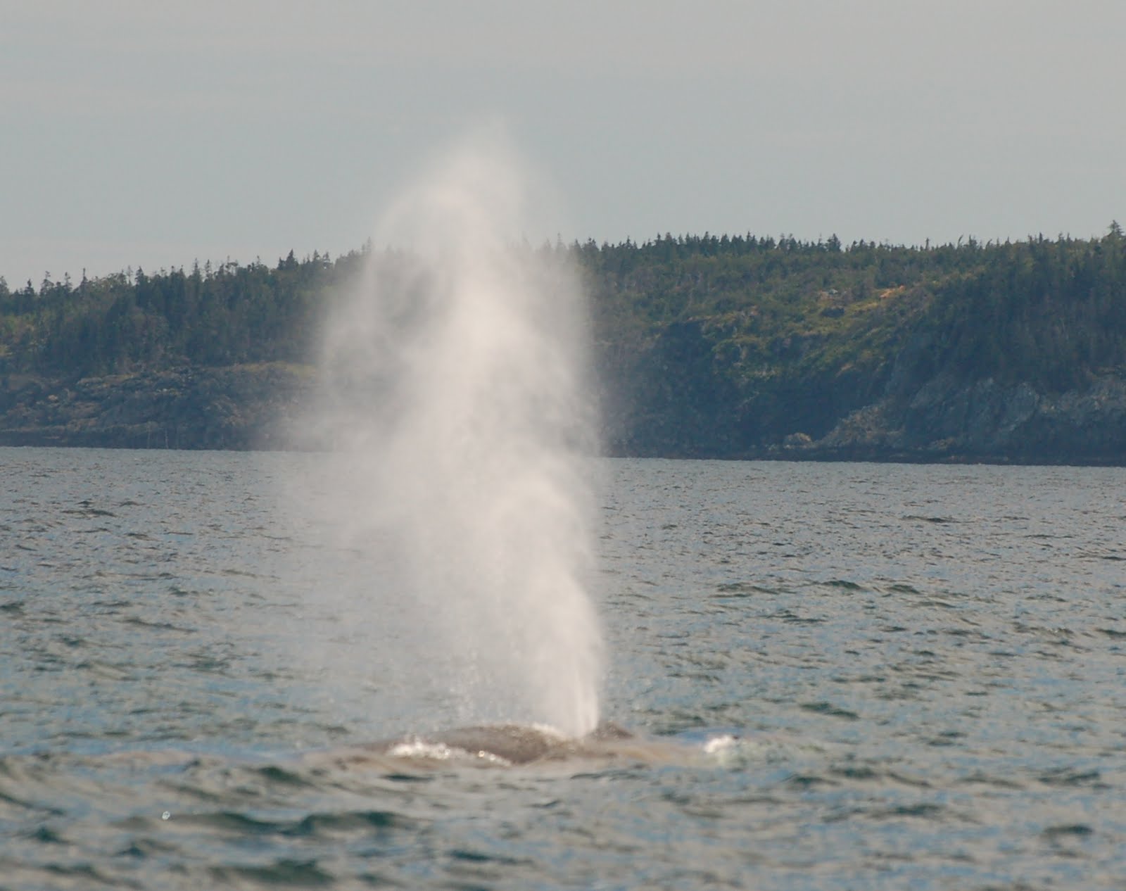 Hello everyone, I am sorry that it has been so long since I have posted. It has been a frustrating few weeks with weather (fog and wind) and whales. We have been seeing minke whales on most trips, confined to the Islands due to weather but there have been a few trips where we have not seen whales (if whales are not sighted our passengers have the choice of 1/2 their money back or a free pass that never expires to come out again with us). Well, today the weather was on our side and John took advantage of that and took us right offshore in search of fin whales and on both out 10am and 2 pm trip we certainly found what we were looking for!