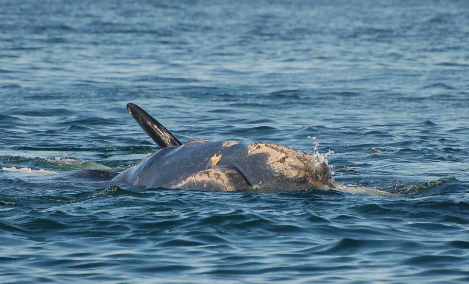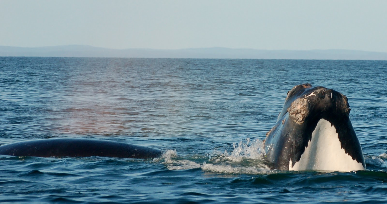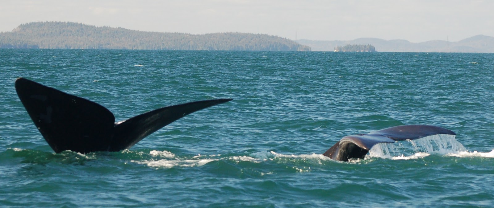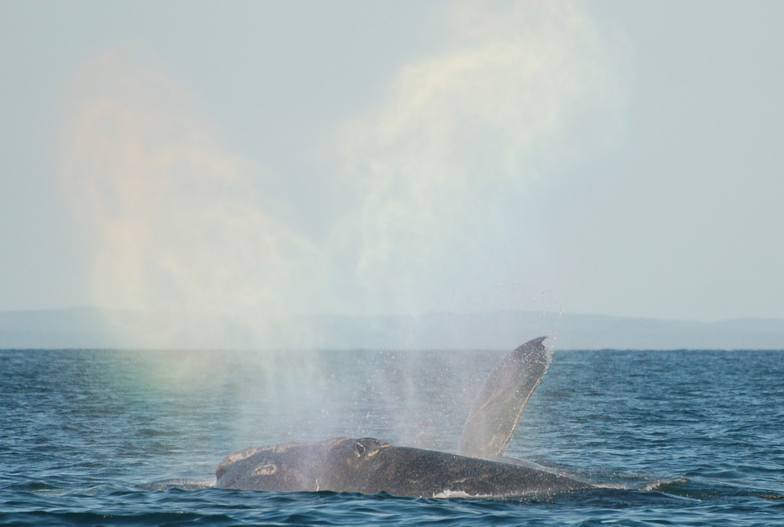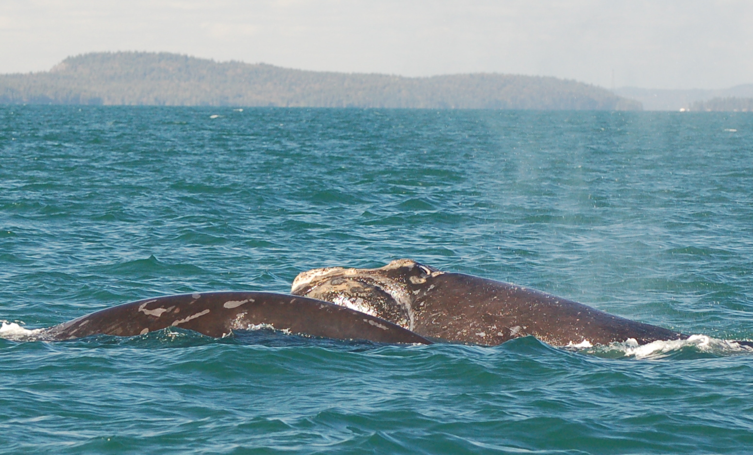 Hello everyone, I know this is starting to sound “regular” for our sightings but it is NOT….we had another amazing afternoon with north Atlantic right whales! We had word that maybe the rights had moved back South into the Bay of Fundy but our captain decided to look for himself, and as the tide had turned he decided to take a run offshore….and are we ever glad he did. We found a mother and calf right whale pair about a mile inside of South Wolf first, we saw them once but choose to leave them be and make our way further out. Here are some shots of the cow and calf pair (1 of 21 calves born in the world this year).