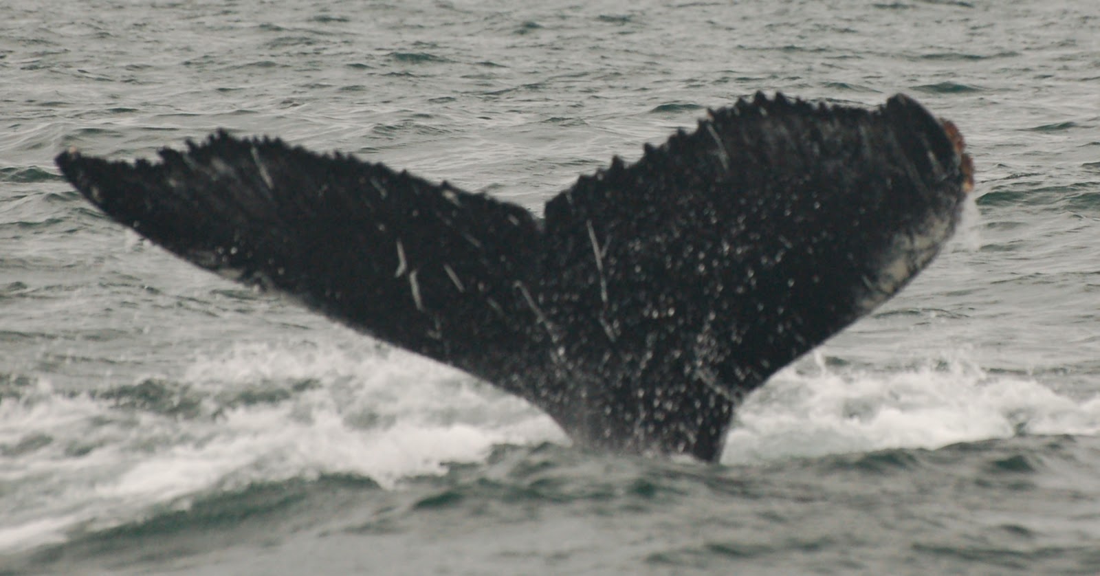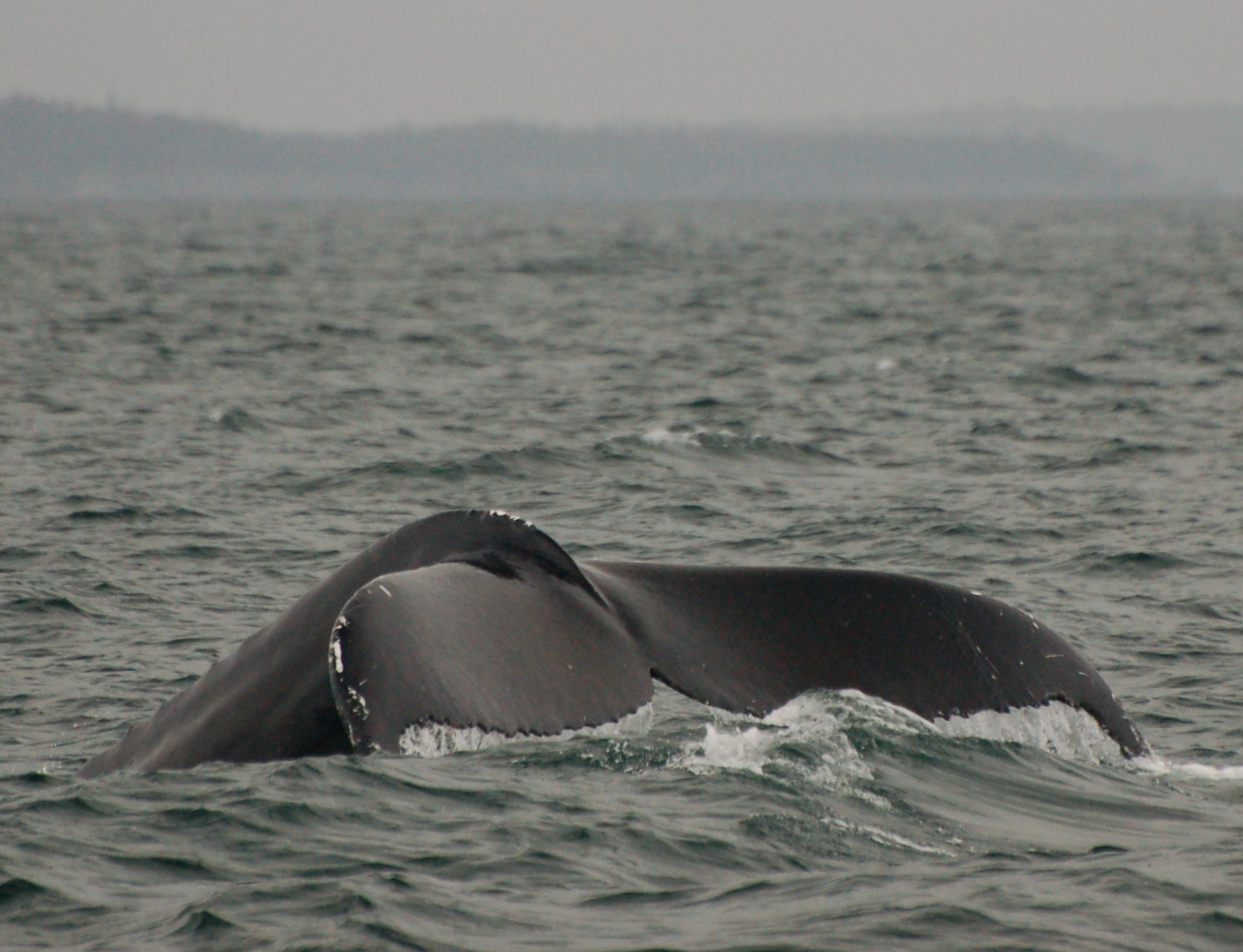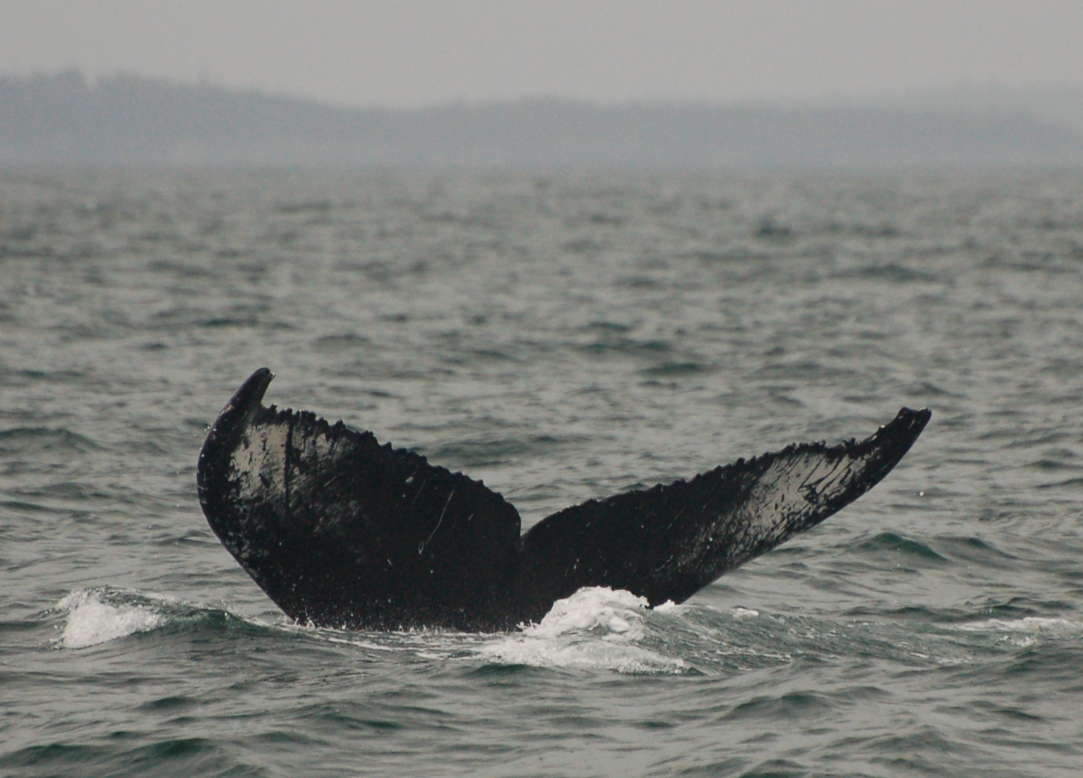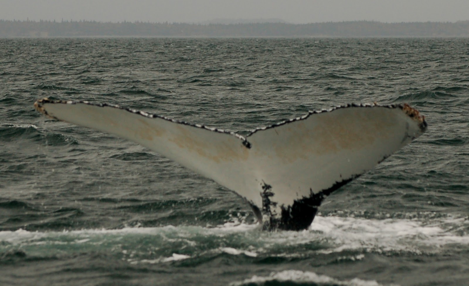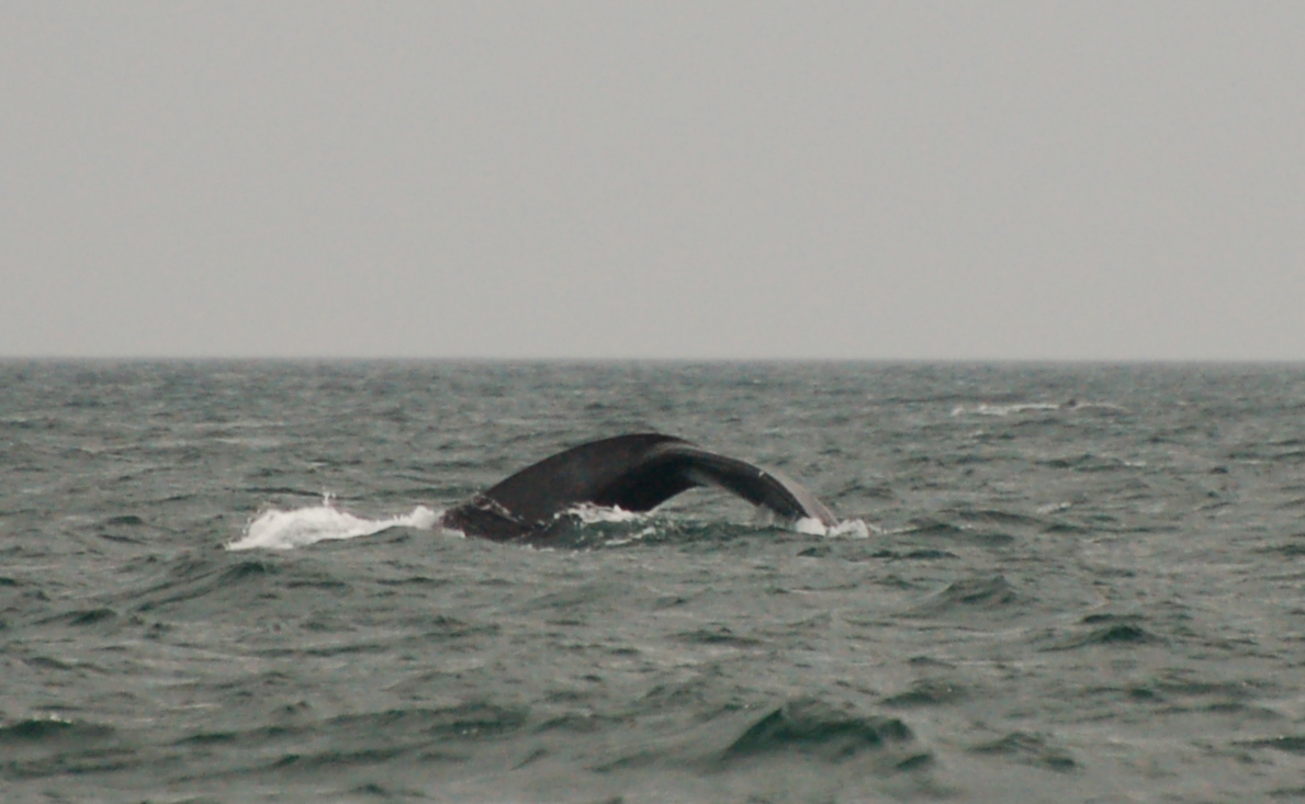 When I got home and started to look at my pictures from today I knew that I had a few tails that I didn’t recognize and when I zoomed in on one photo that was taken at quite a distance my heart sank….I had a photo of Clutter, the humpback who is entangled and who we saw a few days ago. I didn’t notice out there or we would have been able to call Whale Rescue out. I am always so honest on here, if you read this blog often you know I get emotional when it comes to these whales and I just feel so very bad, I am so incredibly upset with myself that I didn’t notice out there that it was Clutter….it’s not a tail I know very well and I hope I get the chance to see this whale again SOON and call Campobello Whale Rescue out to help him. Here is the picture I took today, you can see the line still around the fluke 🙁 I am so sorry Clutter.