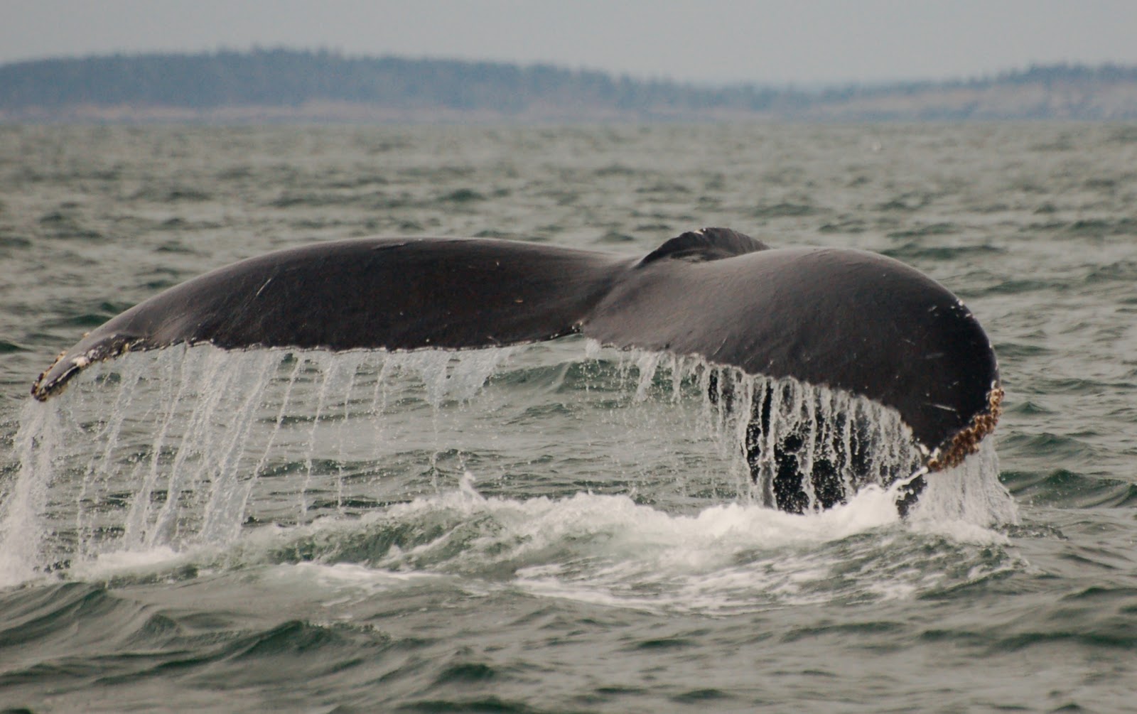 Hey everyone, today was our second to last whale watch of the 2011 season and we had a fantastic afternoon on the Bay of Fundy. We got close looks at 3 humpbacks to be able to get an ID but there were more blows to be seen further to the East. We also saw 5 breaches…all at a distance….but if you were looking in the right direction you would have been able to see the entire body of a humpback completely out of the water!