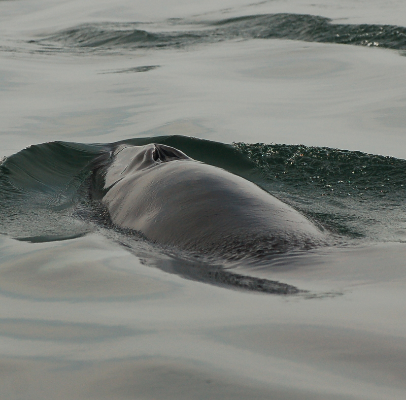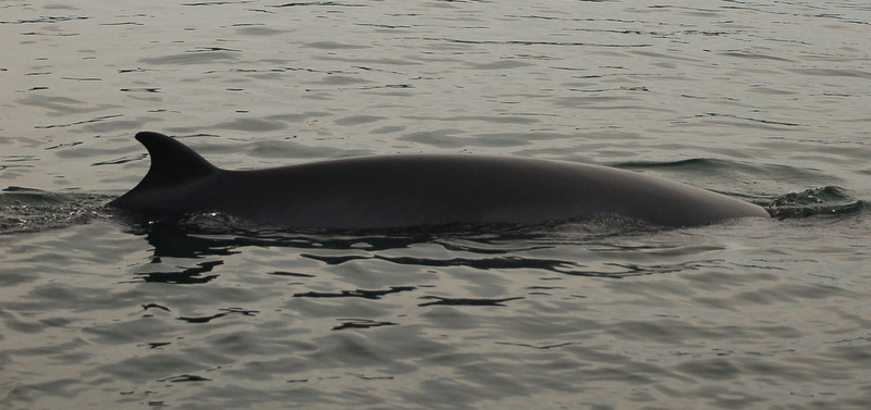 | minke whale, not the double blow hole, characteristic of baleen whales |
