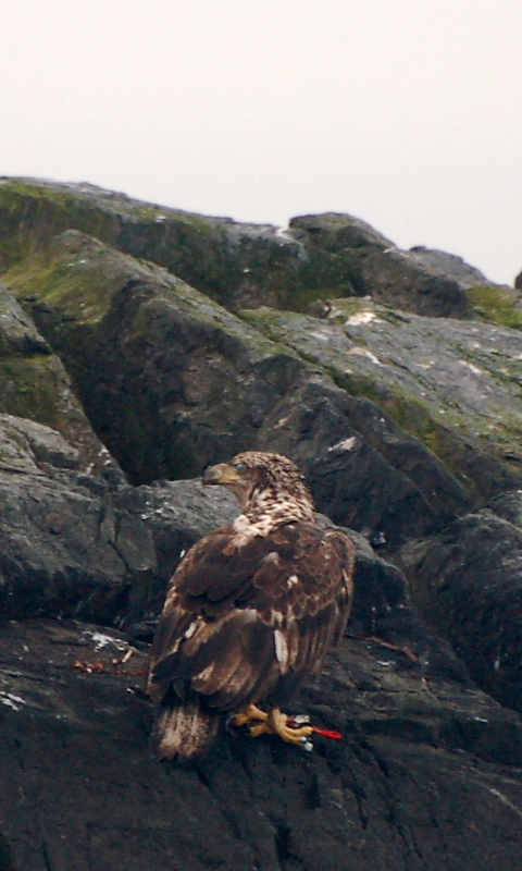 The bald eagles on Whitehorse have been incredible, this young one was enjoying his “lunch”. We continue to see many seabirds, even inshore, today we had puffins, razorbills, murres and 3 species of shearwaters.