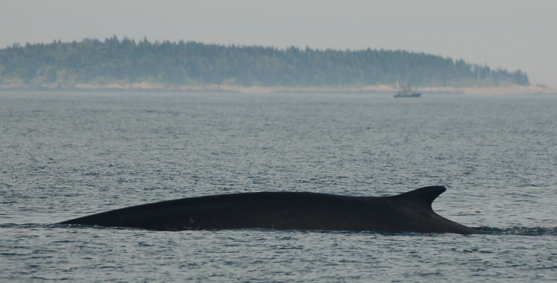 Hello everyone, what a great day we had today! This morning we ran offshore towards the Bank and we found a large finback whale, a new individual for this season! We got some great looks and on our way back in we passed another fin whale.