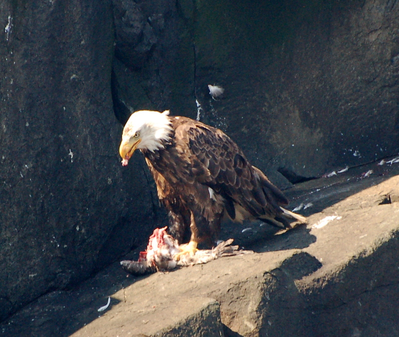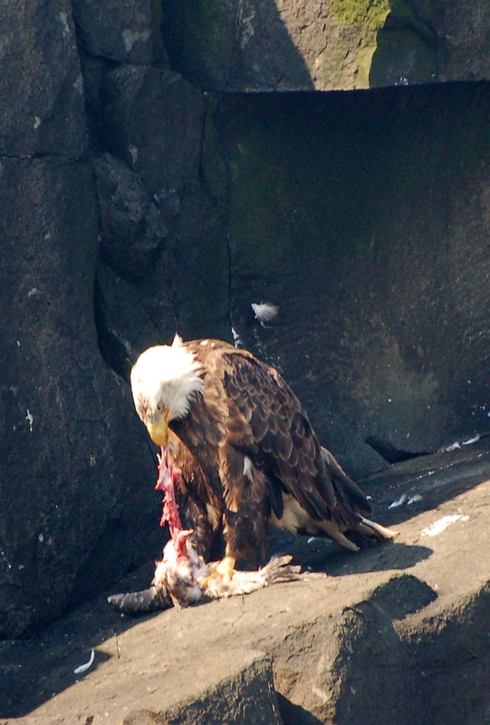 On our afternoon trip we also stopped at Whitehorse Island and we saw a bald eagle enjoy his “lunch”….a young herring gull chick.