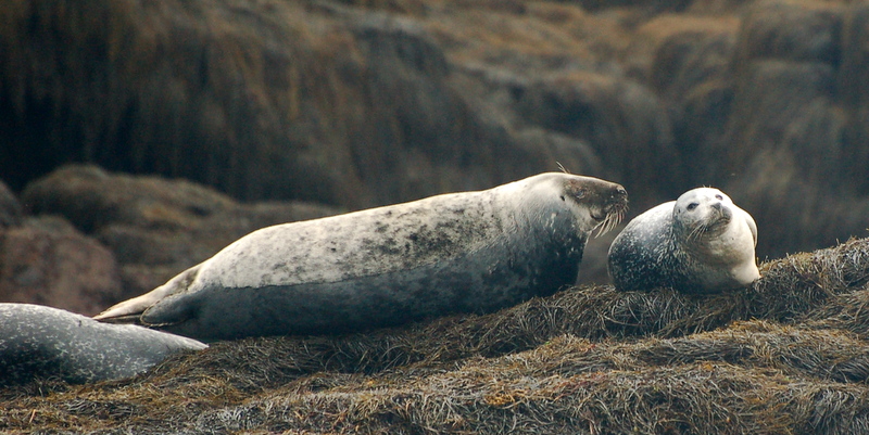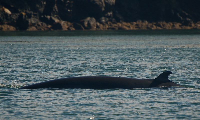 This morning we started by listening for fin whales…and one popped up right beside us! But the fog was just too thick to relocate him. So we went into the Islands and saw some seals and as we were looking at some beautiful scenery the fog lifted and back out we went and found a fin whale…and slow and “sleepy” finback but we got some great looks.