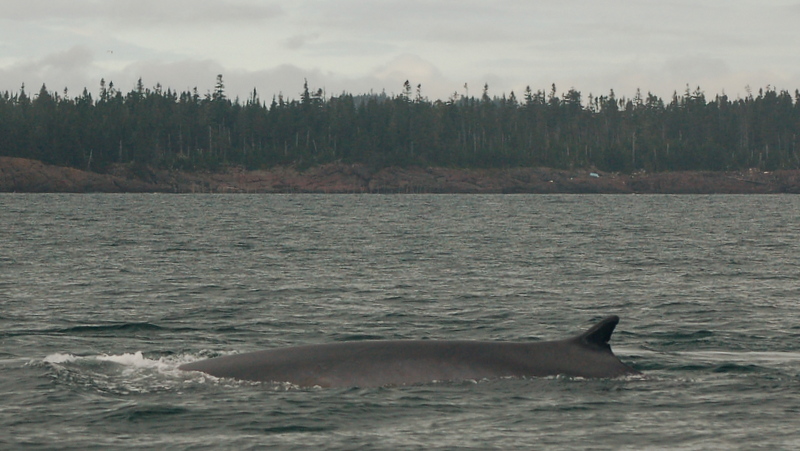As we were watching the minkes we noticed the fog pushed right back and we could see miles offshore so John took us over towards Blacks Harbour where we found 5-6 large feeding fin whales. We got some AMAZING looks as they whales continued to surface and feed very close to the boat.