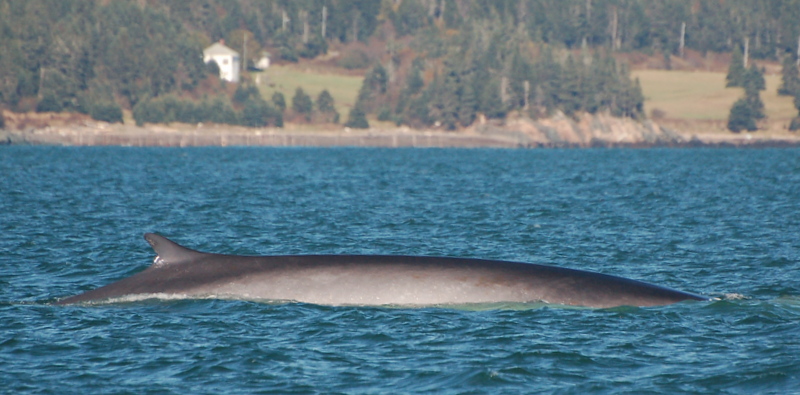 This morning we found 3 minke whales, including Slice in the Islands. This afternoon we found Slice almost where we left him, off Race Rock, before making our way east off Blacks Harbour where we found 2 large fin whales