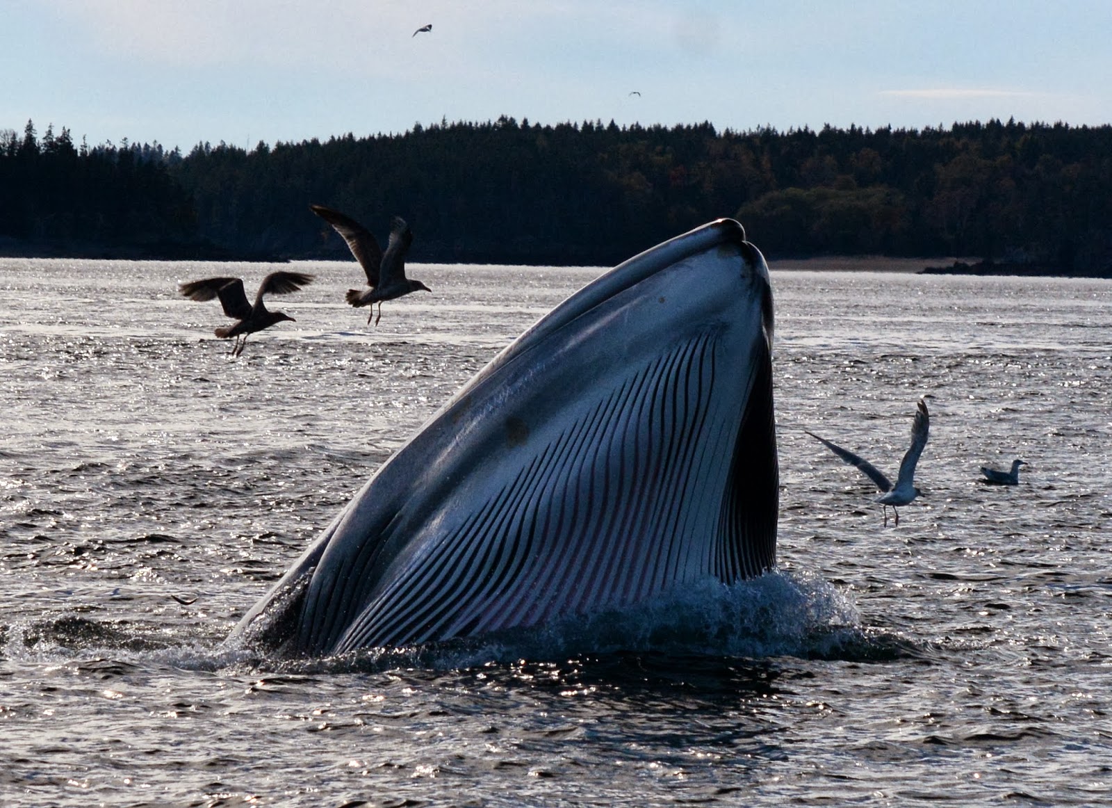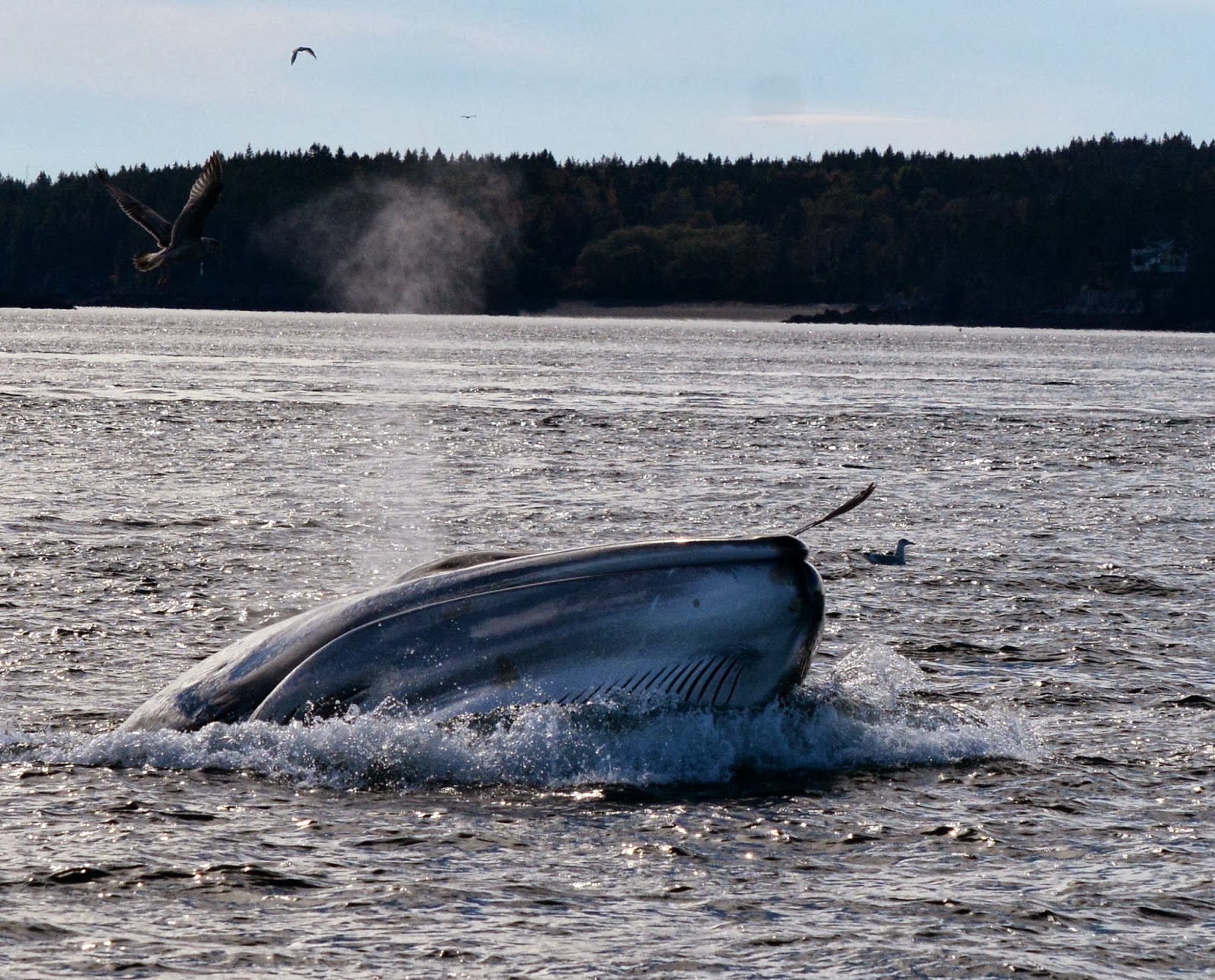 Yesterday afternoon we saw 5 finbacks and a few minkes, we saw lots of feeding right at the surface from both species….amazing to see!